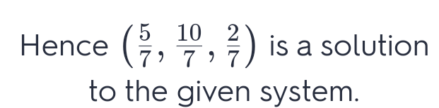 To determine whether the given 3-tuple is a solution, we will substitute it in place of variables x, y and z and see it satisfies each of the three equations.